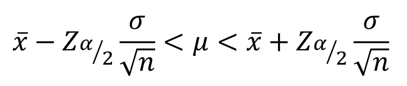 \[\hat{p}-Z_{\alpha/2}\sqrt{\frac{\hat{p}(1-\hat{p})}{n}} < p < \hat{p}+Z_{\alpha/2}\sqrt{\frac{\hat{p}(1-\hat{p})}{n}}\]